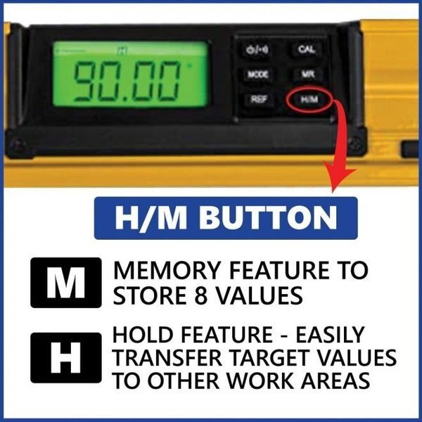 18" Digital Level with Bubble & Memory Function - LCD Screen with backlight - IP54, Big Horn, Mfr#: 14221