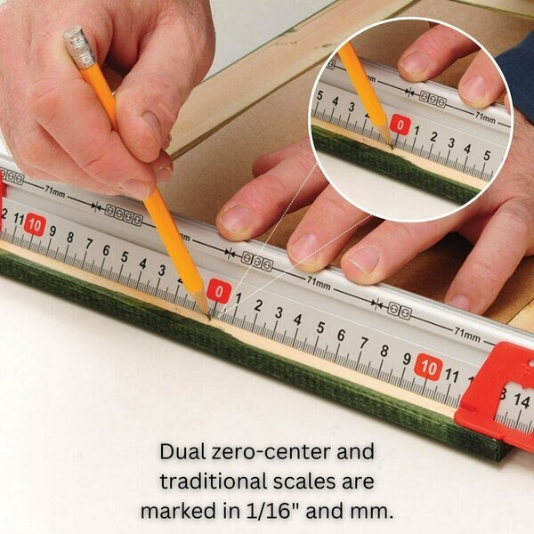 The Measure Mate is a sturdy triangular level and straight edge ruler, with sliding markers and knife guide. It features zero and center point scales, Three screened scales: Imperial, Imperial Center, Metric plus standard plumbing and electrical scales. A convenient sliding knife guide, detachable nail gripper and drill bit diameter gauge make it easier and quicker to do the job right.
