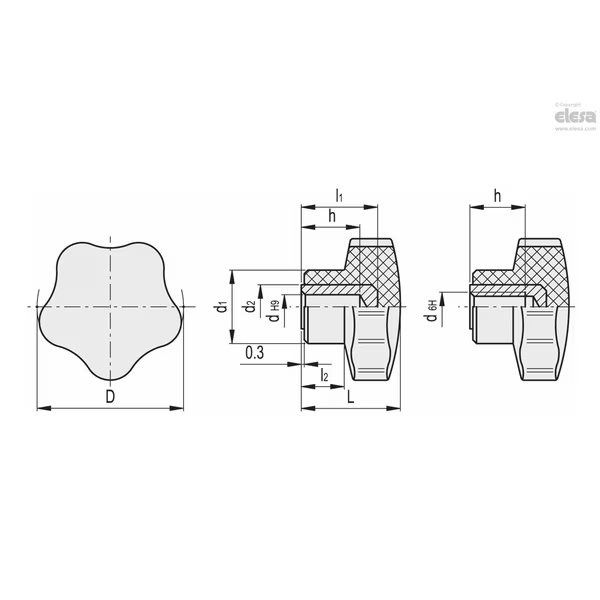 Brass boss, plain or threaded hole, VC.192/40 B-8, Elesa, Mfr#: VC.192-B