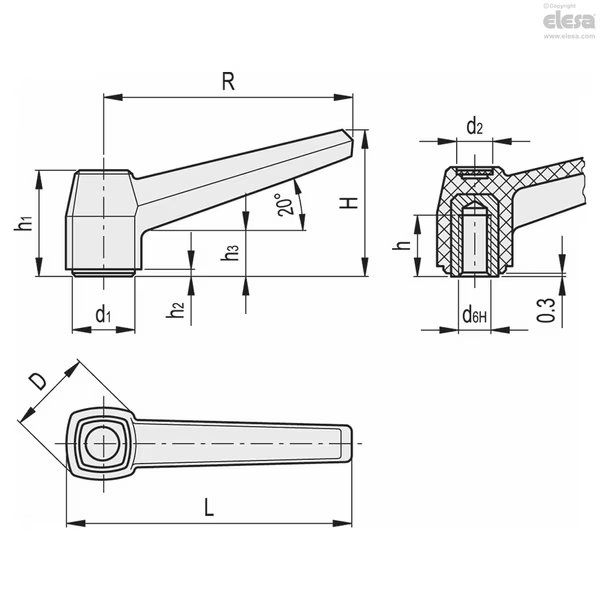 Brass boss, threaded hole, MF.40 B-M6, Elesa, Mfr#: MF-B