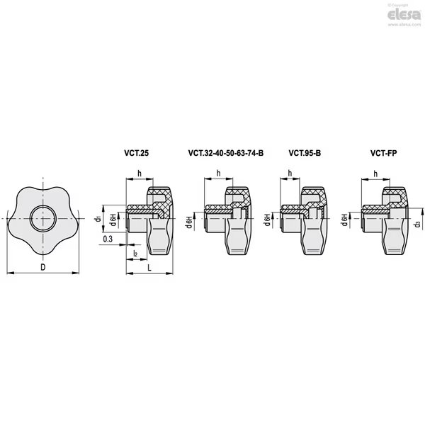 Brass boss, threaded hole, with cap, VCT.63 B-M8-C2, Elesa, Mfr#: VCT-B
