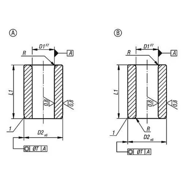 Drill bushing, DIN 179 Mild steel. Rounded top. IDxODxH: 10x15x12 mm, Kipp, Mfr#: K1021.A1000X12