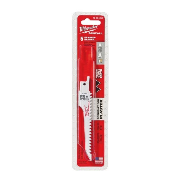 SAWZALL 5" 6 TPI Plaster Blades - 5 PK, Milwaukee Tool, Mfr#: 48-00-5052