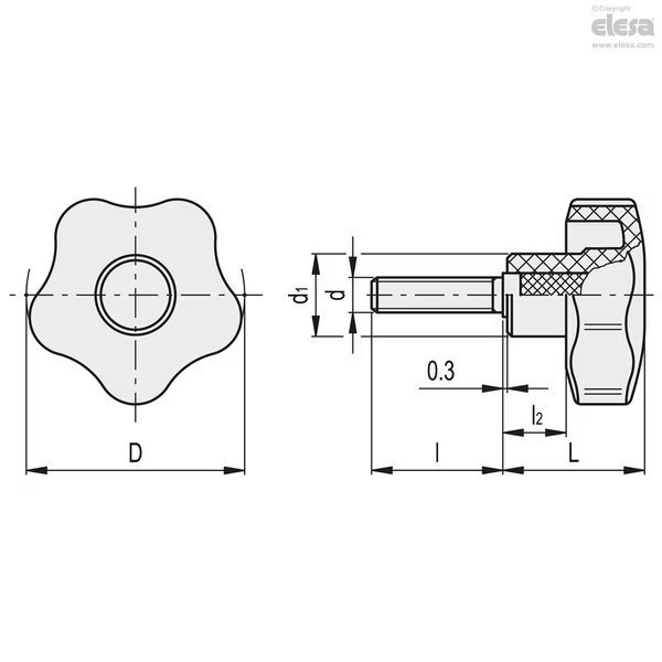 Stainless steel threaded stud, with cap, VCT.50-SST-p-M10x40-C4, Elesa, Mfr#: VCT-SST-p