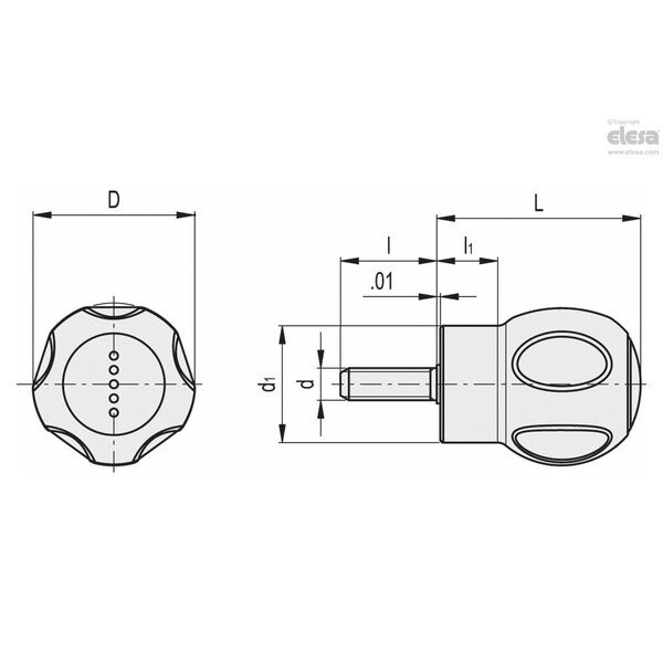 Threaded stud, EBK.50 p-5/16-18x3/4-C1, Elesa, Mfr#: EBK-p-SOFT (inch sizes)