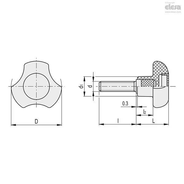 Threaded stud, VTT.32-C-p-M6x25-C3, Elesa, Mfr#: VTT-C-p