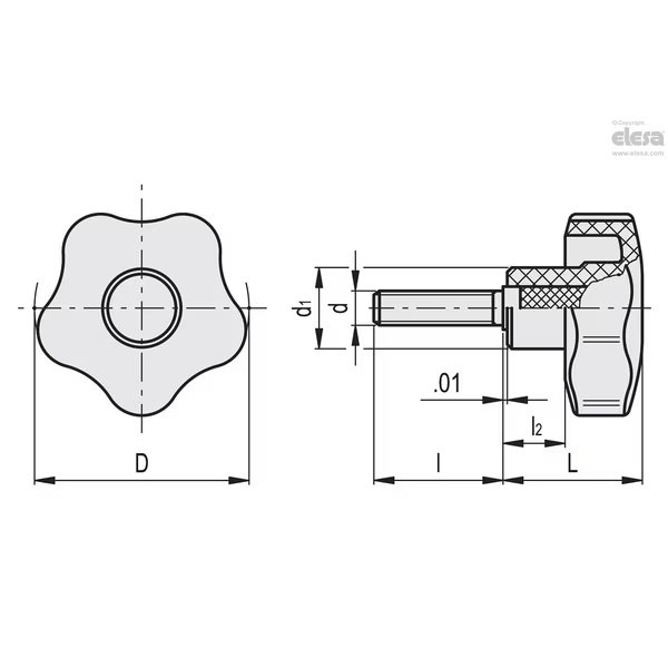 Zinc-plated steel threaded stud, with cap, VCT.32 p-5/16-18x1-C4, Elesa, Mfr#: VCT-p (inch sizes)