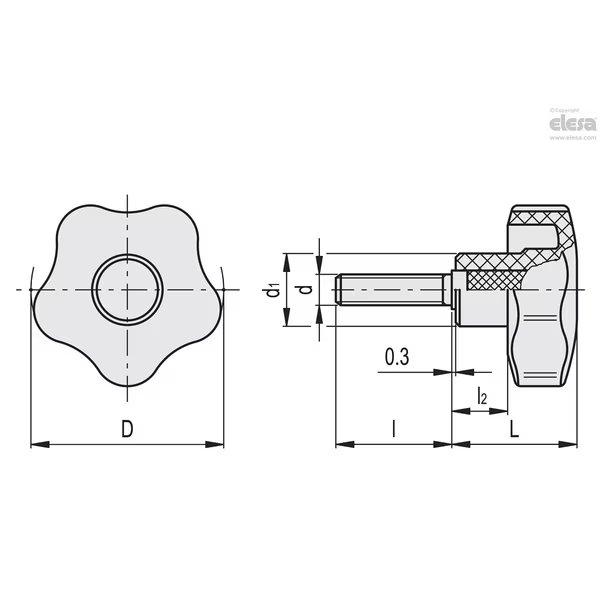 Zinc-plated steel threaded stud, with cap, VCT.50 p-M10x30-C5, Elesa, Mfr#: VCT-p